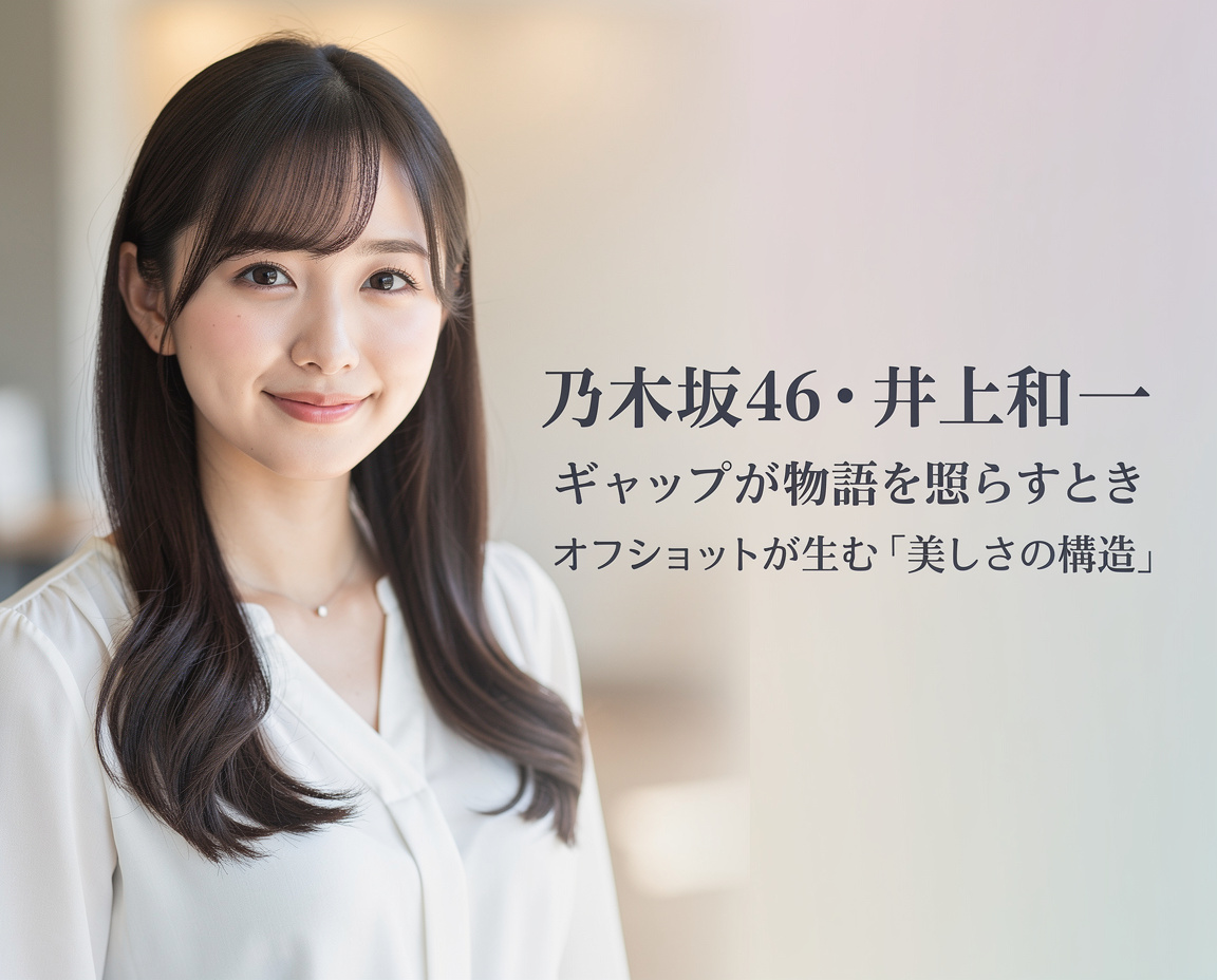 井上和のオフショットが語られるのは、 写真が美しいからではなく、 ギャップ・文脈・象徴性・レイヤー といった複数の記号が ひとつの構造として結びついているからだ。