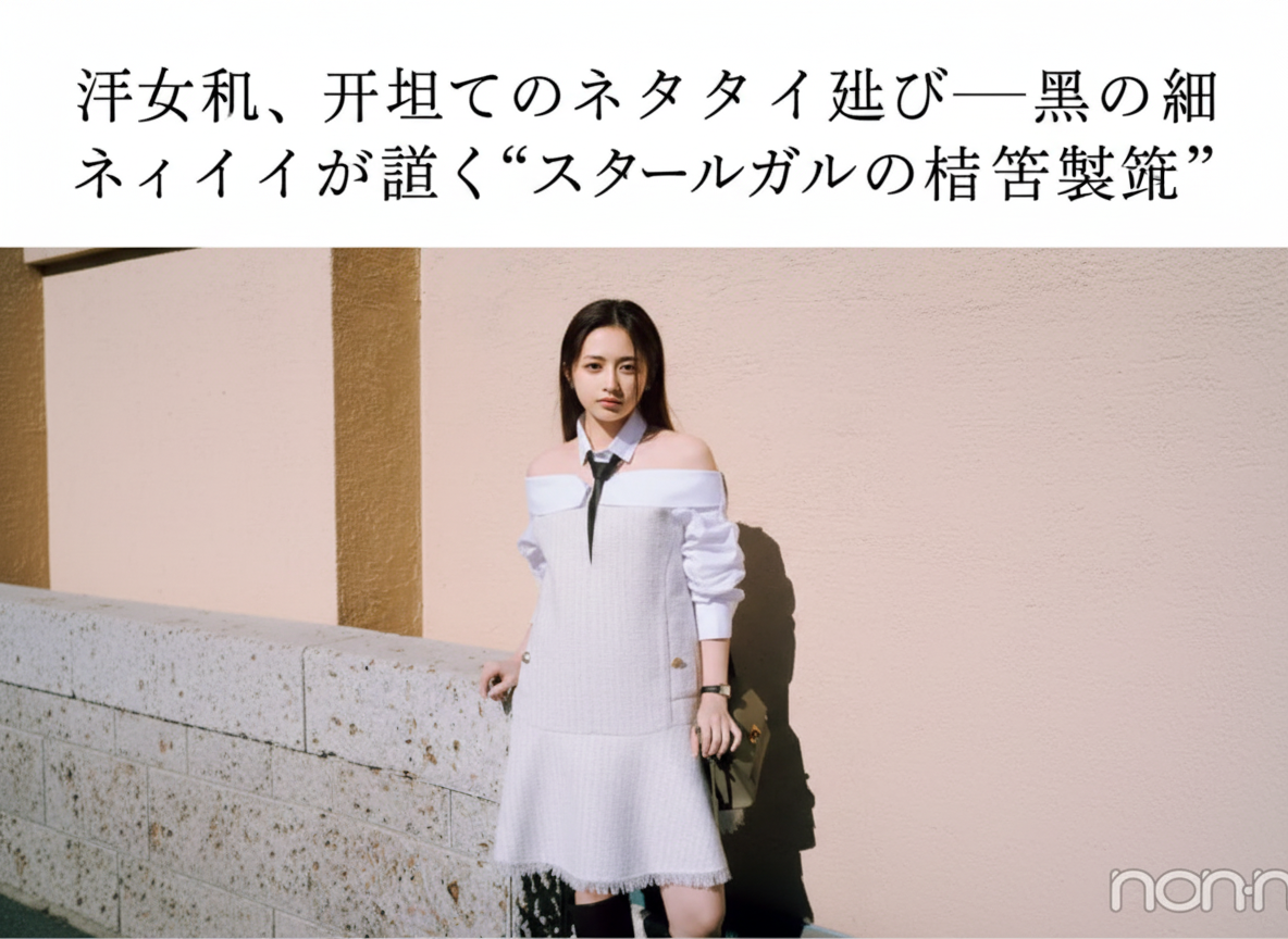 井上和が見せた“黒の細ネクタイ×ミニスカセットアップ”というスクールガール風コーデは、 単なる制服アレンジではなく、「大人と子どもの境界線をどう描くか」という物語的な問いを含んでいた。 SNSでは「似合いすぎる」「スタイリッシュなのに可愛い」「ネクタイ選びが天才」といった声が並び、 その反応は“似合う”を超えて“構造の妙”に触れているように見える。