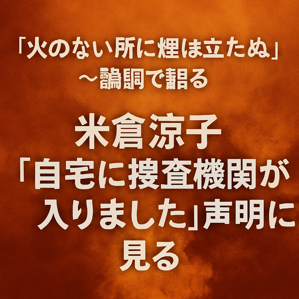 🔥【考察】米倉涼子「自宅に捜査機関が入りました」声明に見る、“火のない所に煙は立たぬ”という日本社会の反応装置