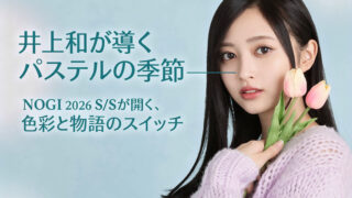 はじめに 本日12:00、NOGI 2026 S/Sのモバイル企画がスタートした。春夏としては初の登場で、パステルカラーのグッズが並ぶ。井上和がその中心に立つことで、色彩の軽やかさと彼女の静かな存在感が交差し、SNSでは早くも“季節...