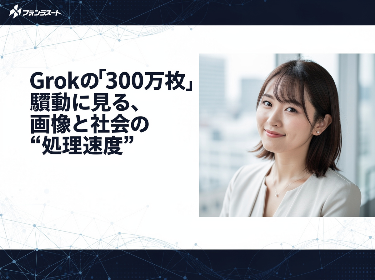 「Grokが300万枚の画像を加工したらしい」という推計がSNSを駆け巡った。 数字の大きさに驚く声、精度への疑念、そして“AIはどこまで見ているのか”という漠然とした不安。 この反応の揺れ幅そのものが、現代の情報環境の“物語構造”を示しているように思える。